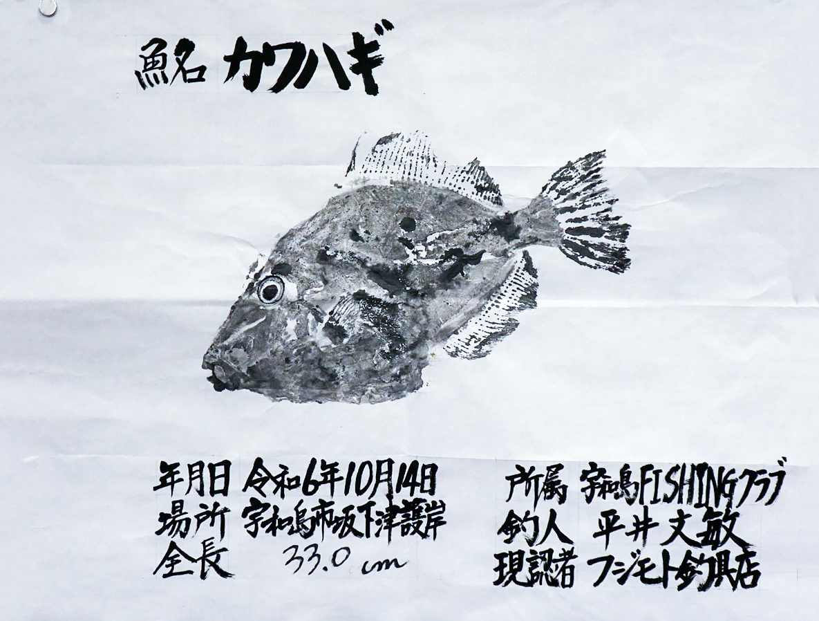 | カワハギ | 33.4 | 平井 文敏 | 宇和島FISHINGクラブ | 愛媛 | R-6 |
