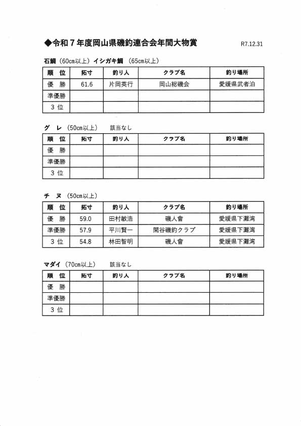 令和7年 岡山県磯釣連合会年間大物賞(PDFファイルで開く)