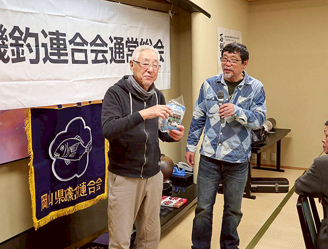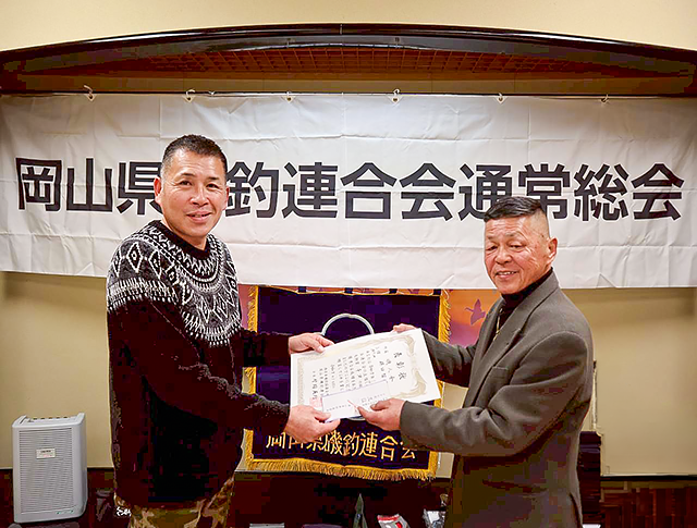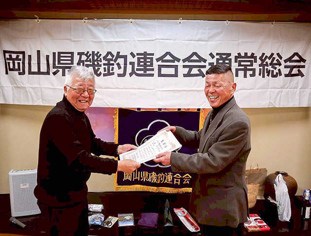 【年間大物賞 石鯛の部優勝 岡山総磯会 片岡会長(左)】