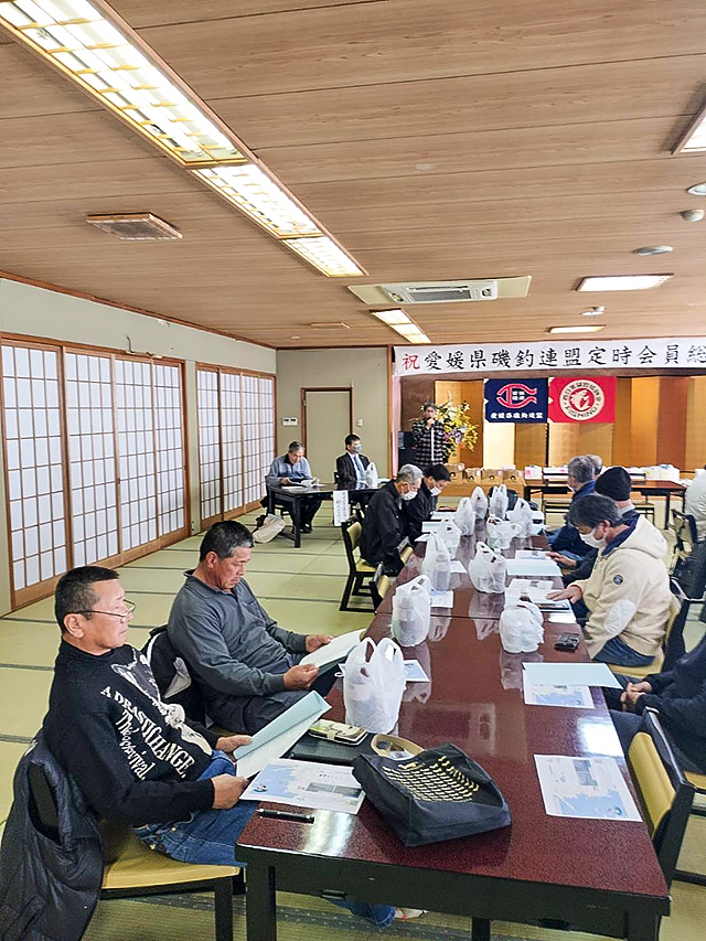 愛媛磯連は、1月26日(日)宇和島真珠会館にて令和7年度総会を開催した。総会に先立ち、磯連有志達で宇和島の和霊神社で安全祈願の祈祷を受けた。また、今年の入賞者賞品は豪華な真珠を真珠会館さんより準備して頂いた。